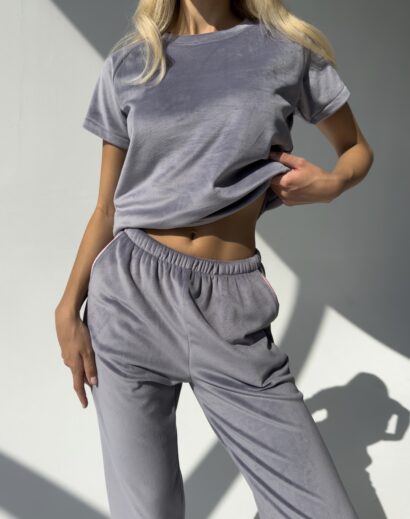 Домашній костюм (штани+футболка) із двосторонньго велюру, штани комфортної посадки з м’якою резиночкою, у штанів йдуть кишені з кантом, футболка вільного крою Матеріал: двосторонній велюр із шовковим кантом Кольори: чорний, беж, сіро-блакитний, темно-фіолетовий, фісташка, темно-блакитний, ніжно блакитний, аквамарин, темно-зелений, молоко, пудра, манговий, малина, шоколад Розміри: XS (40-42) S (42-44) M (44-46)