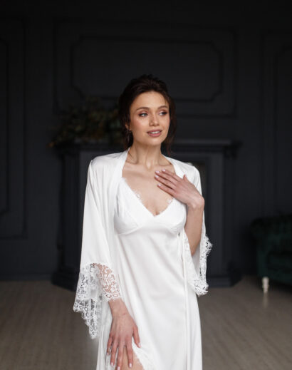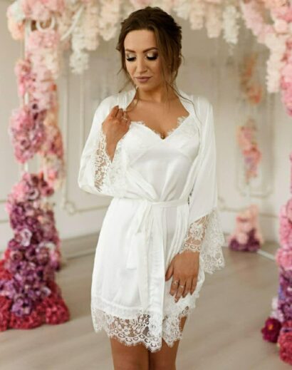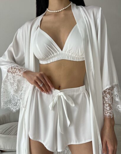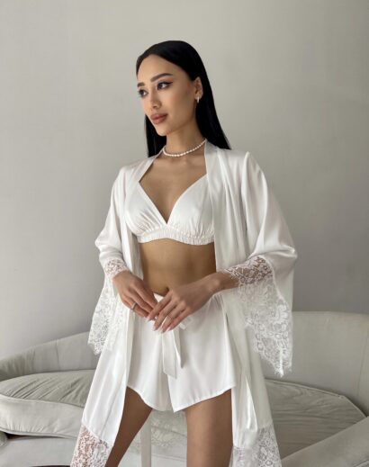 Шовковий комплект із мереживом. Ідеально сідає по фігурі, приємний до тіла. Підійде для гарних фотосесій, на ранок нареченої і для повсякденного використання. Матеріал: шовк із мереживом Кольори: молочний Розміри: XS (40-42) S (42-44) M (44-46) L (46-48)