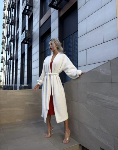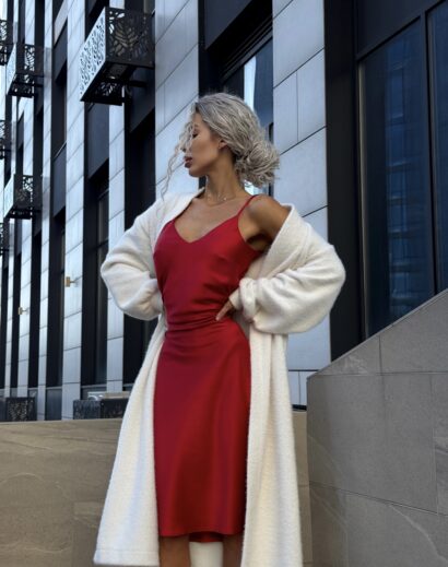 Об’ємний кардиган з ангори +Сукня з двосторонньго шовк-сатину