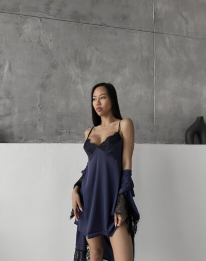 Пеньюар з розкльошеним рукавом, сорочка під груди із мереживом. Ідеальна посадка за фігурою Матеріал: шовк із мереживом Кольори: чорний, пісочний, молочний, темно-синій, смарагд, шоколад, ліловий, пудра Розміри: XS (40-42) S (42-44) M (44-46) L (46-48) Можливо придбати окремо пеньюар або сорочку: Пеньюар (халат) 1200грн Сорочка 1050грн