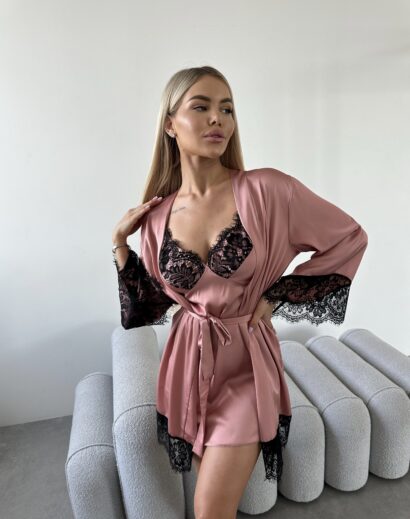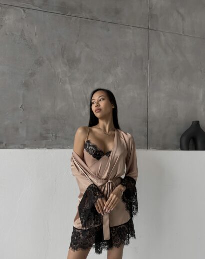 Шовковий комплект із мереживом (Пеньюар + Сорочка)