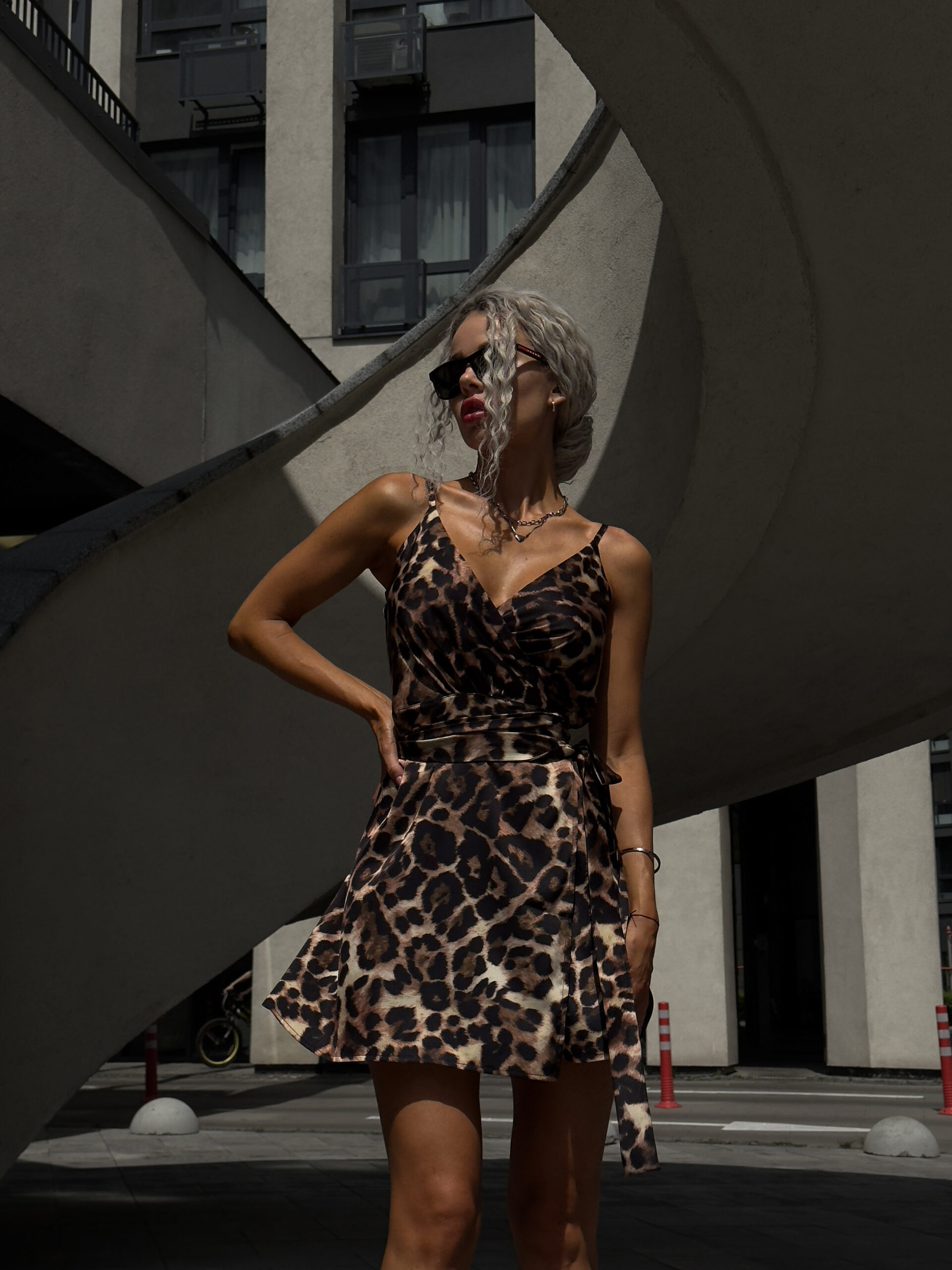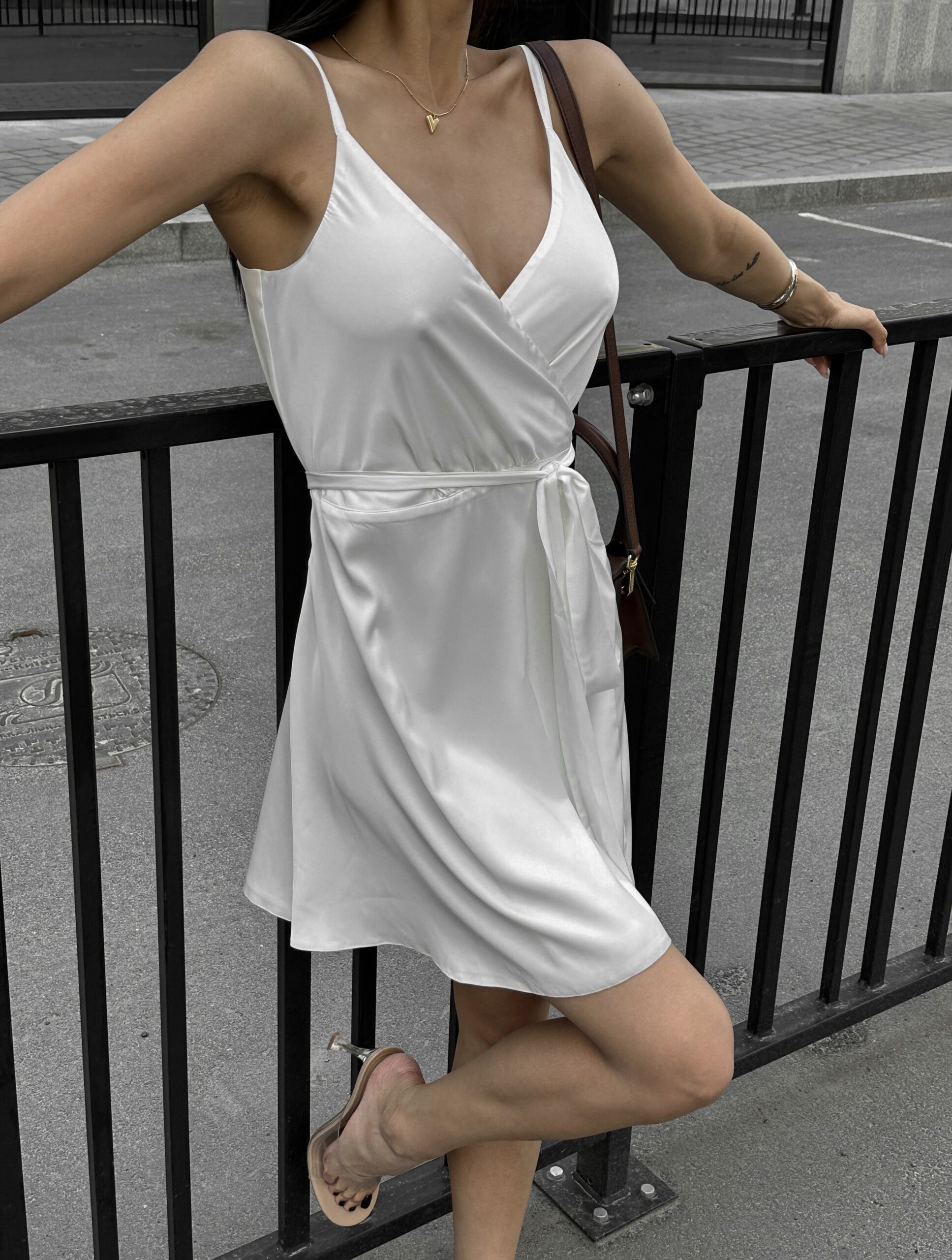Шовкова сукня на запах у білизняному стилі шикарно підкреслює талію, бретелі на регулюванні.