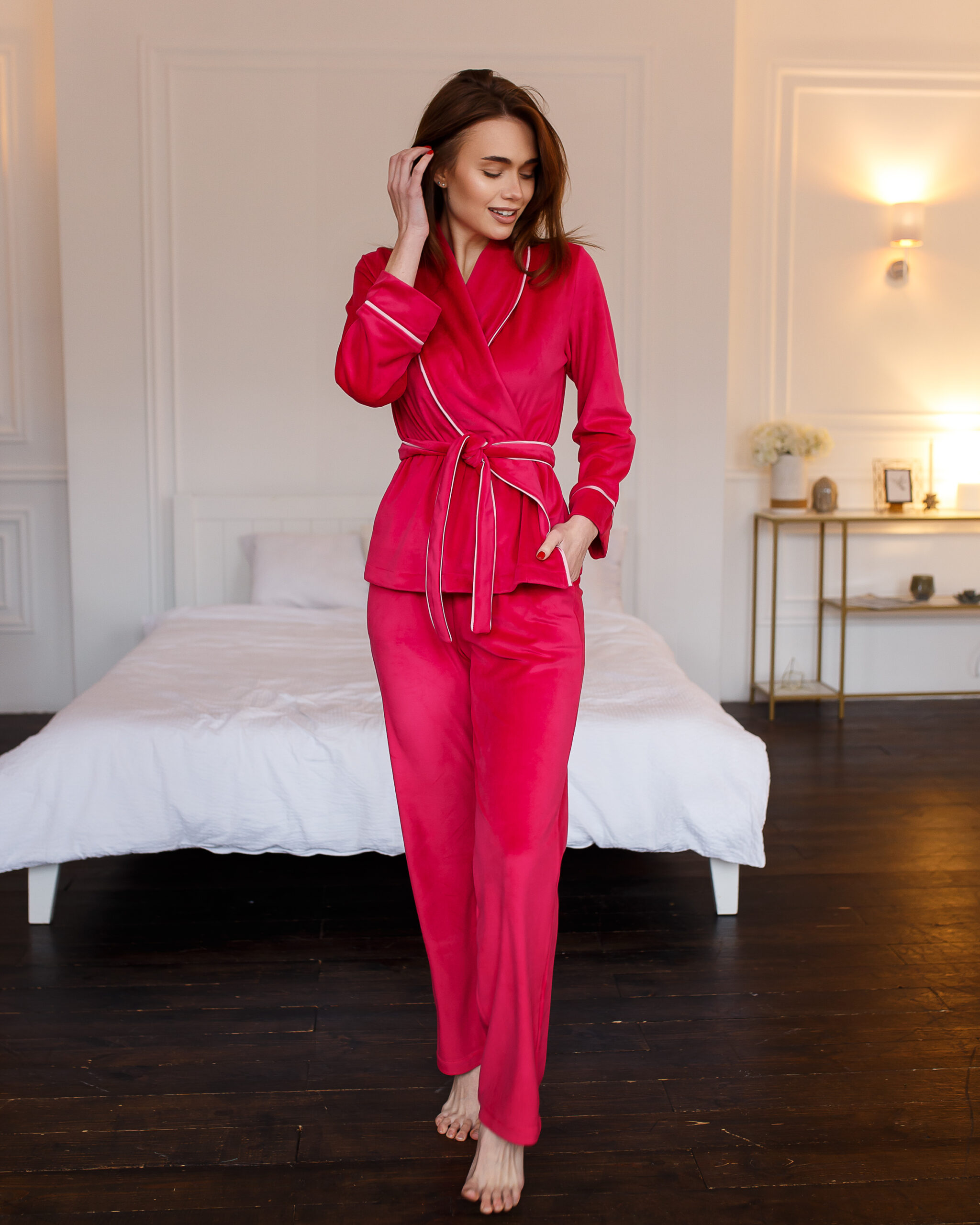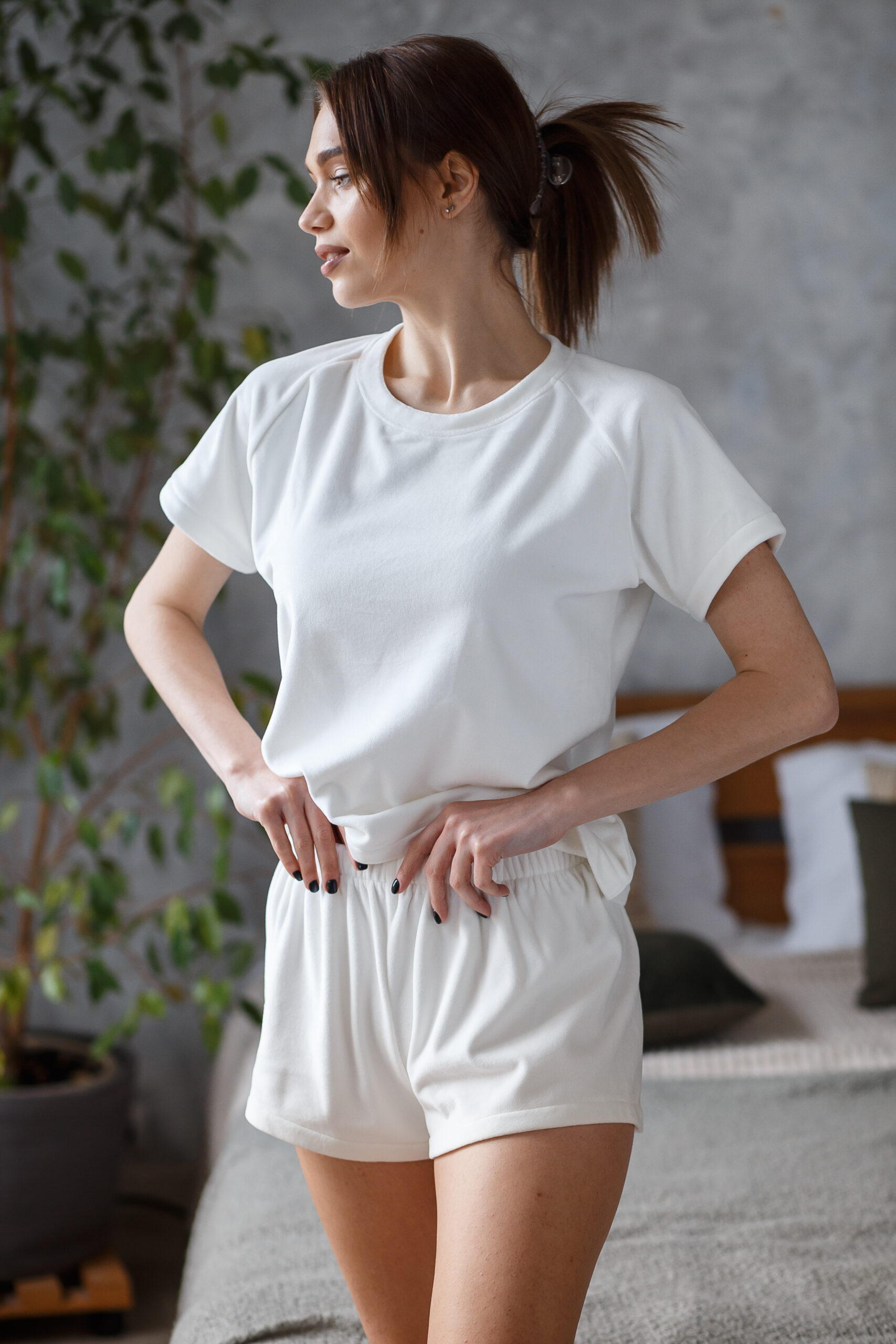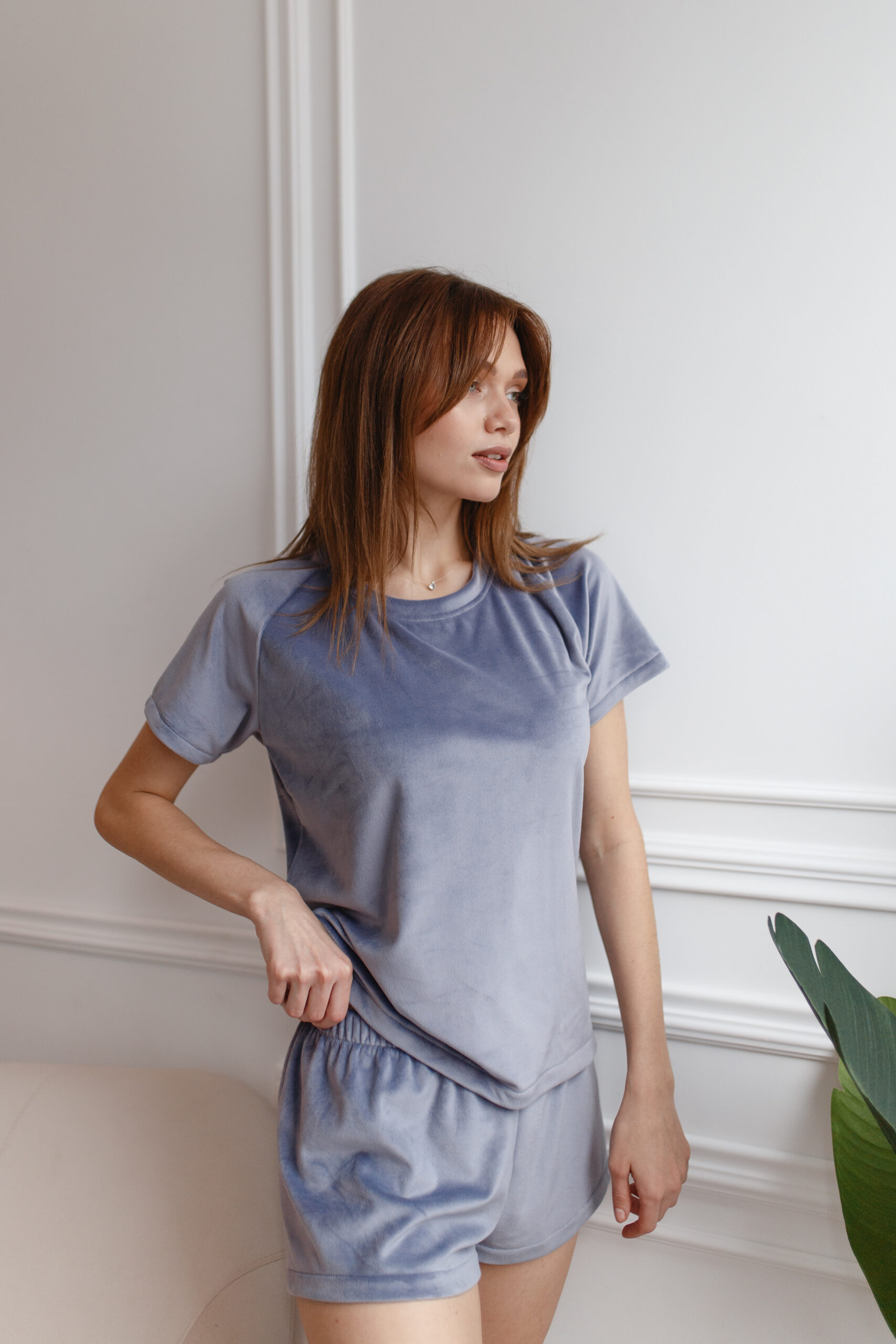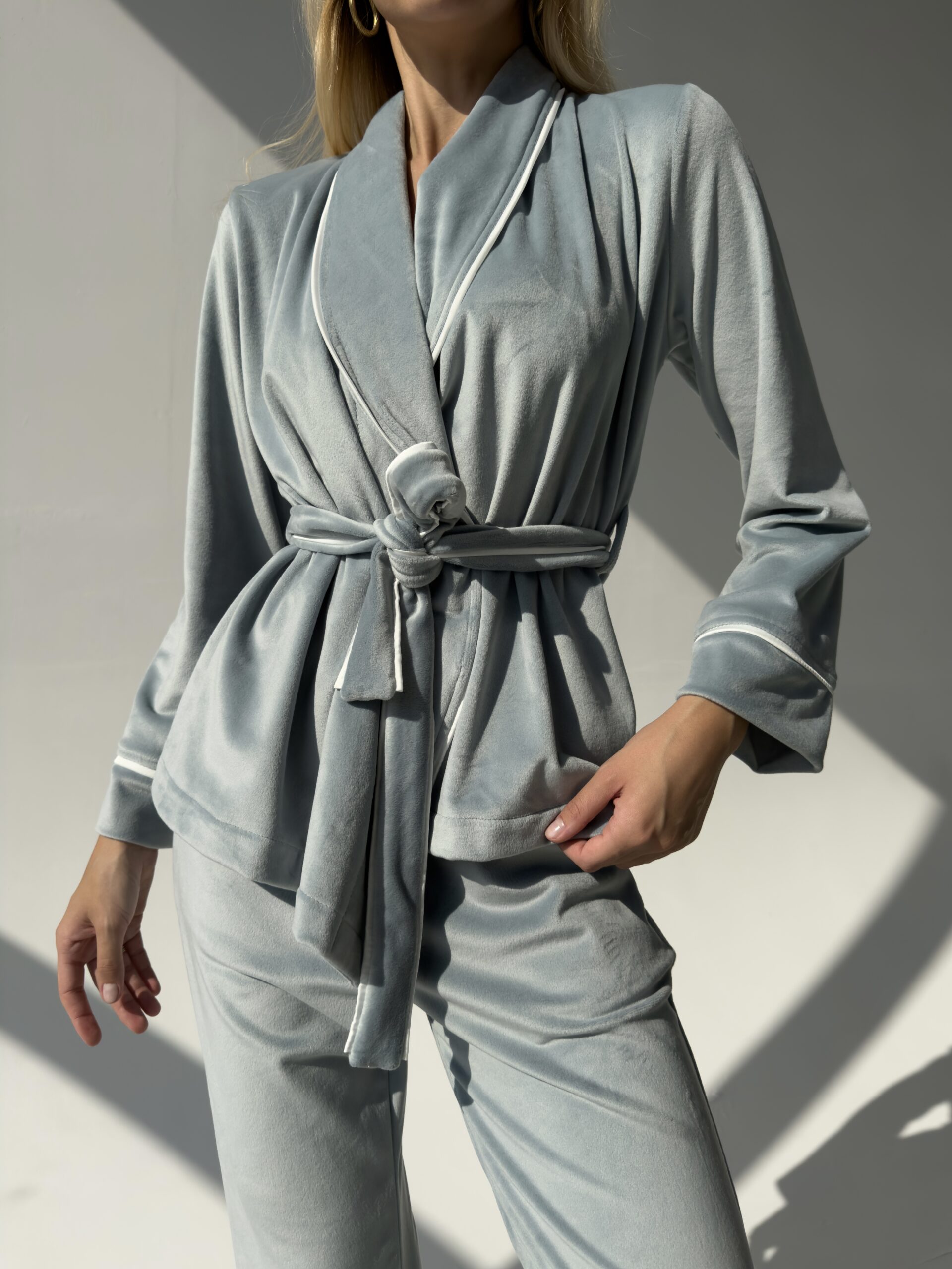 Домашній костюм (жакет+штани+шорти+футболка) із двосторонньго велюру з шовковим кантом,шорти комфортної посадки з м’якою резиночкою,футболка вільного крою