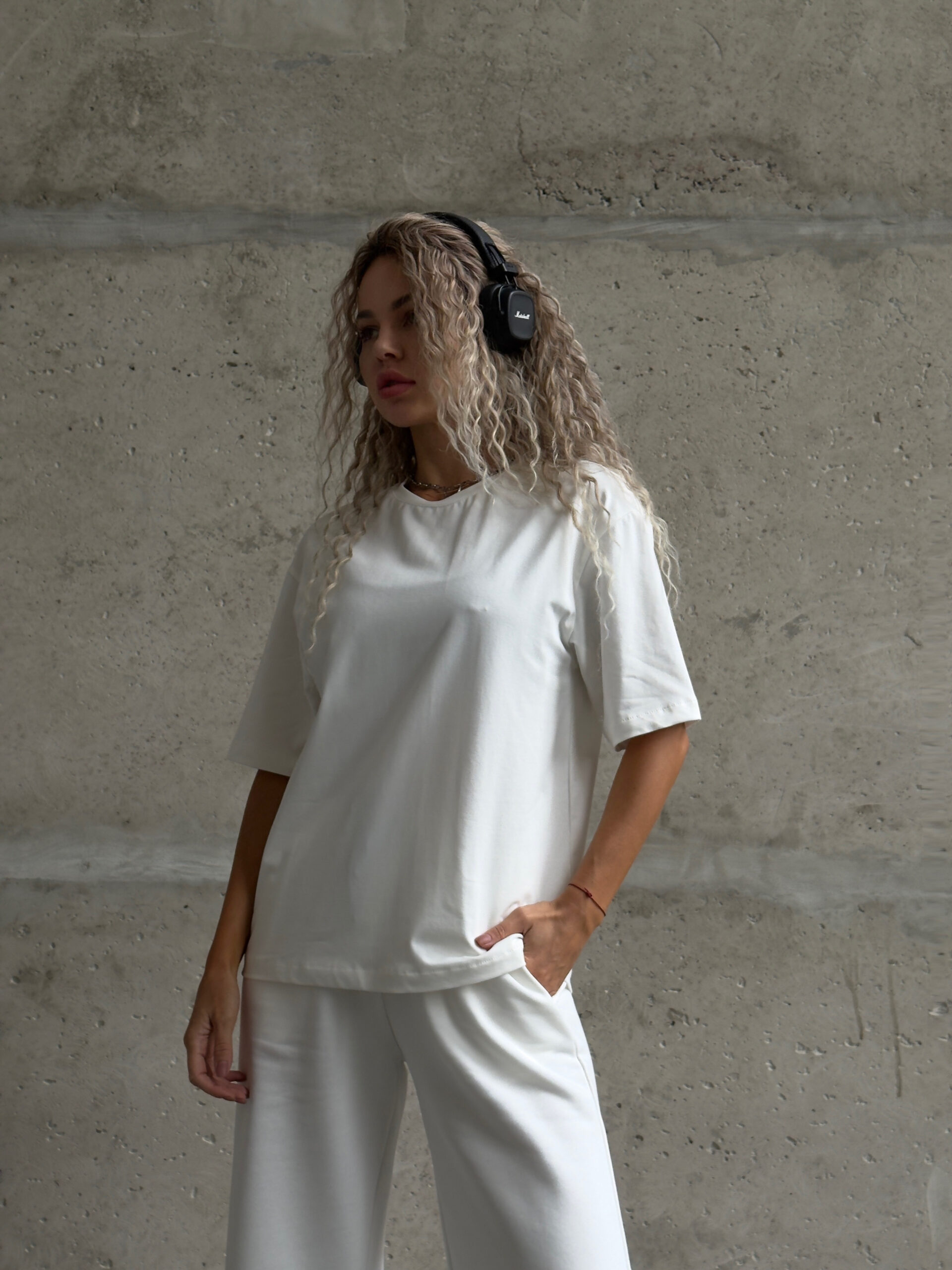 Футболка оверсайз з стрейч-куліра, легка тканина з високою часткою натуральних волокон, використоується для футболок, лонгслівів, суконь, базовий крій та м’який трикотаж дозволяють комбінувати з базовим одягом