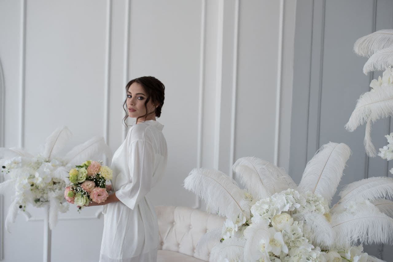 Пеньюар з рукавом 3\4, сорочка з V-подібним вирізом на грудях і прямою спинкою, бретелі на регулюванні