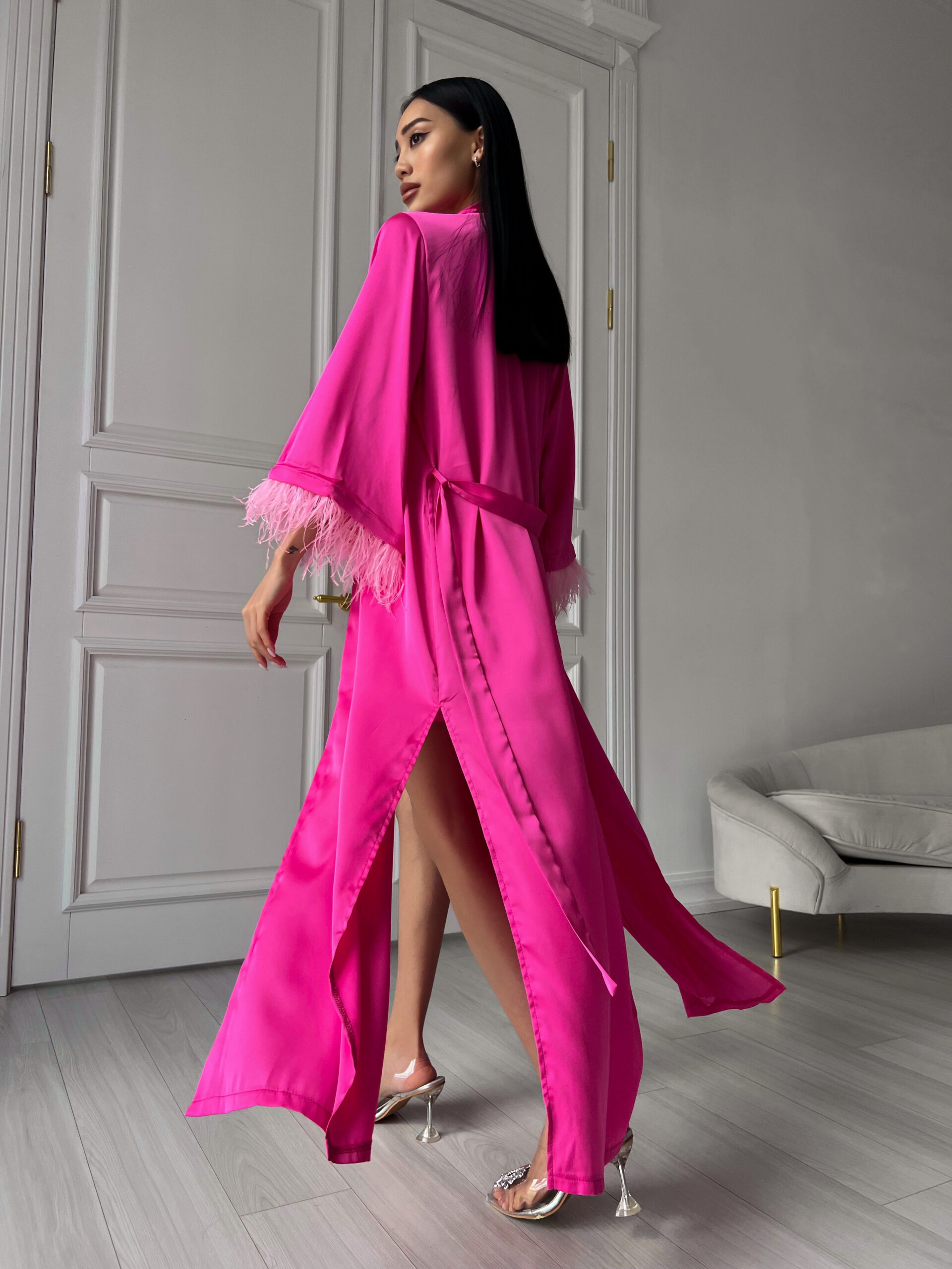 Пеньюар максі з пір’ям (халат) 1620грн