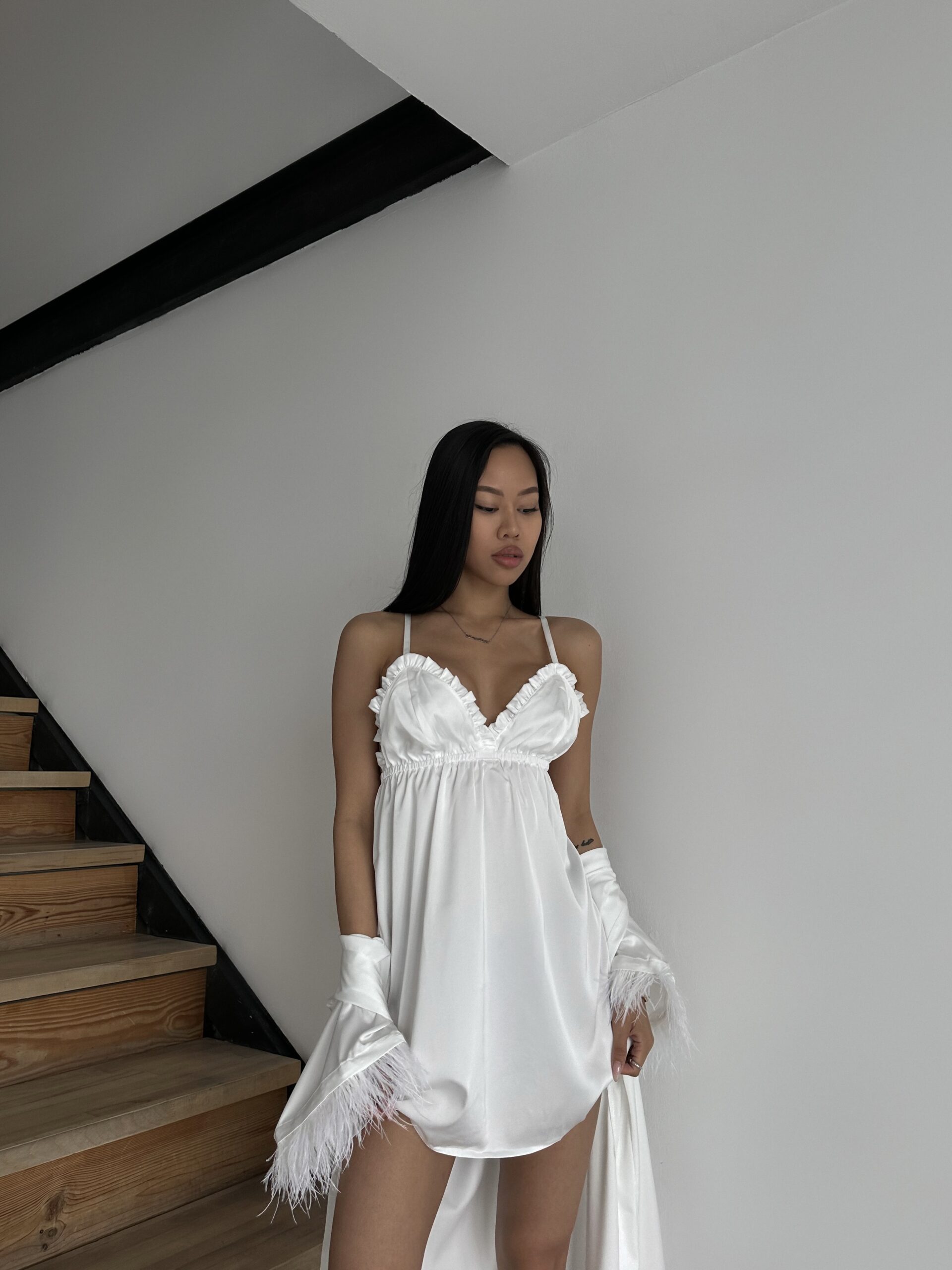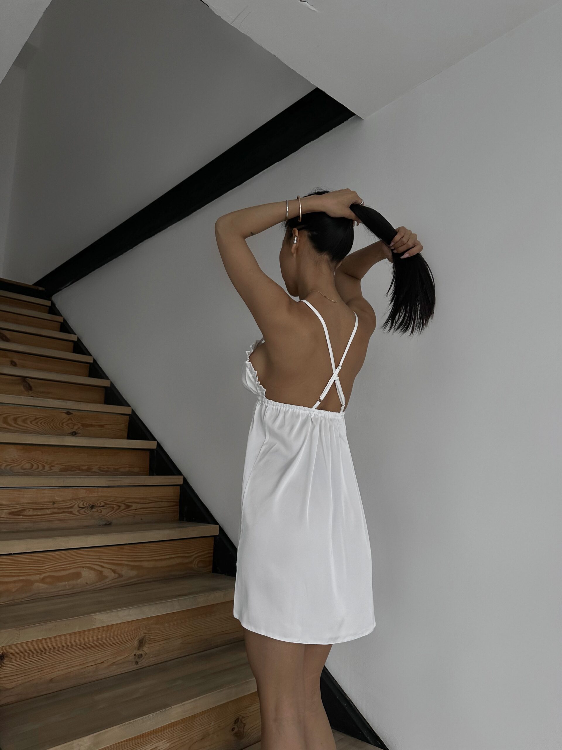 Шовкова сорочка із рюшами і відкритою спинкою