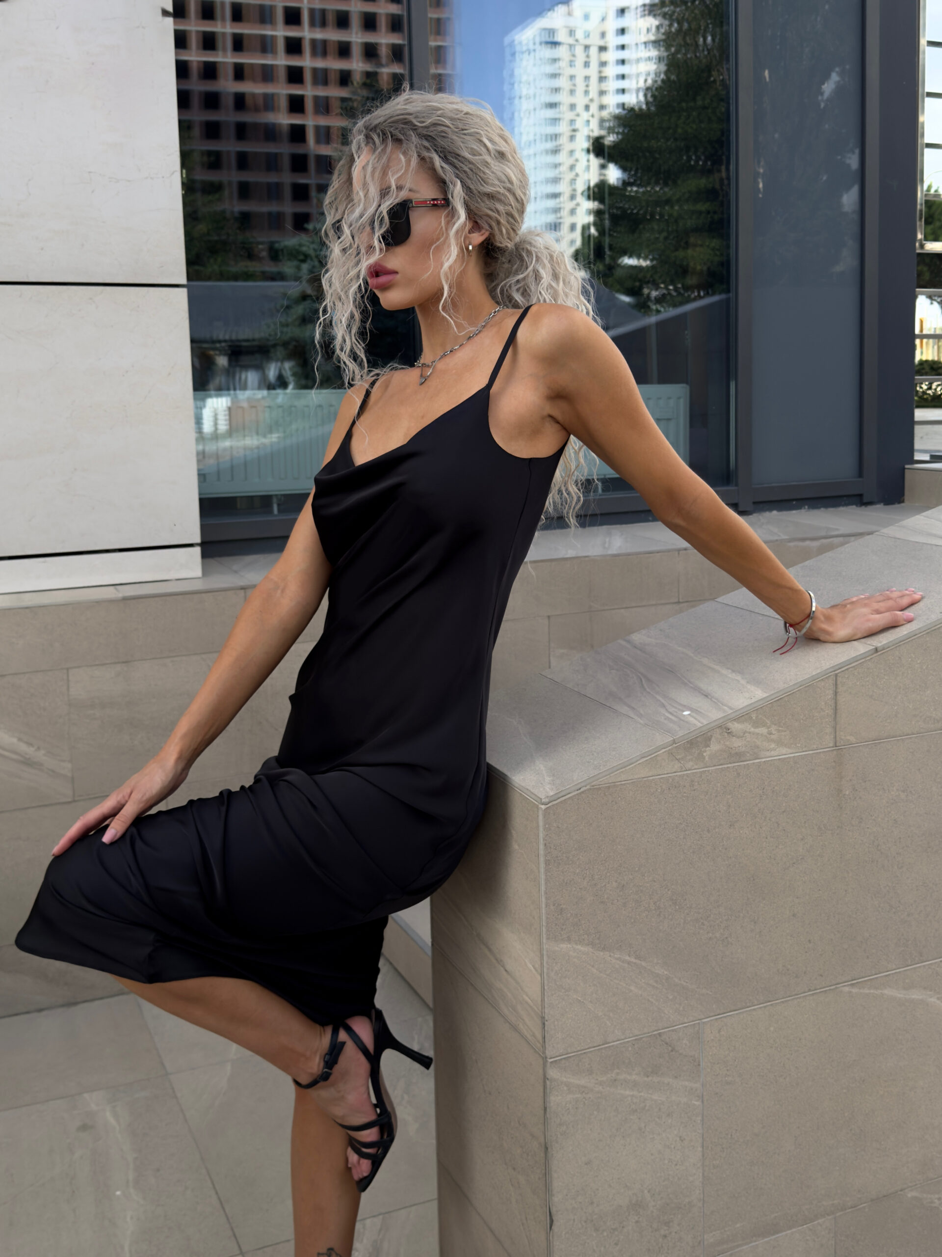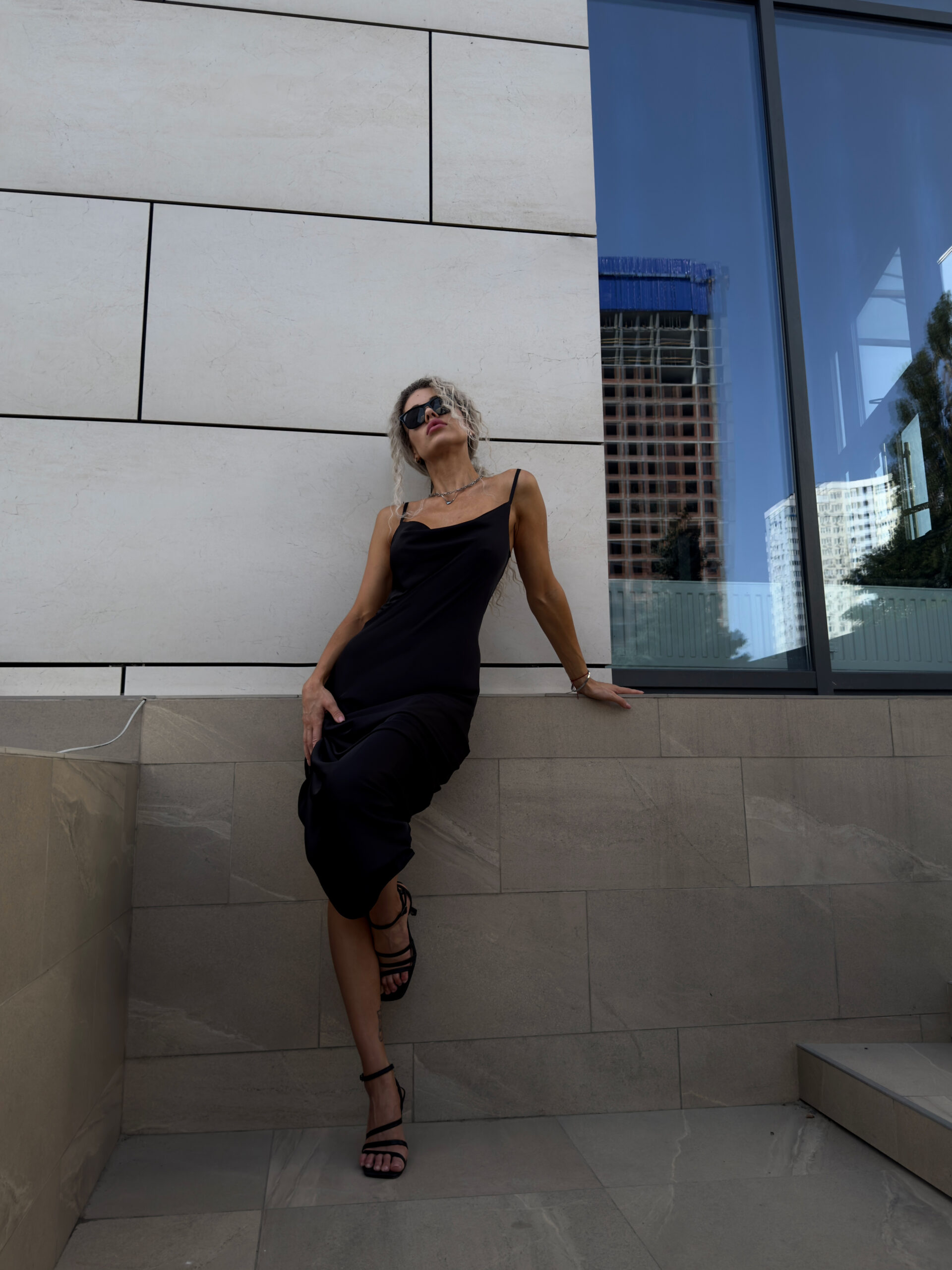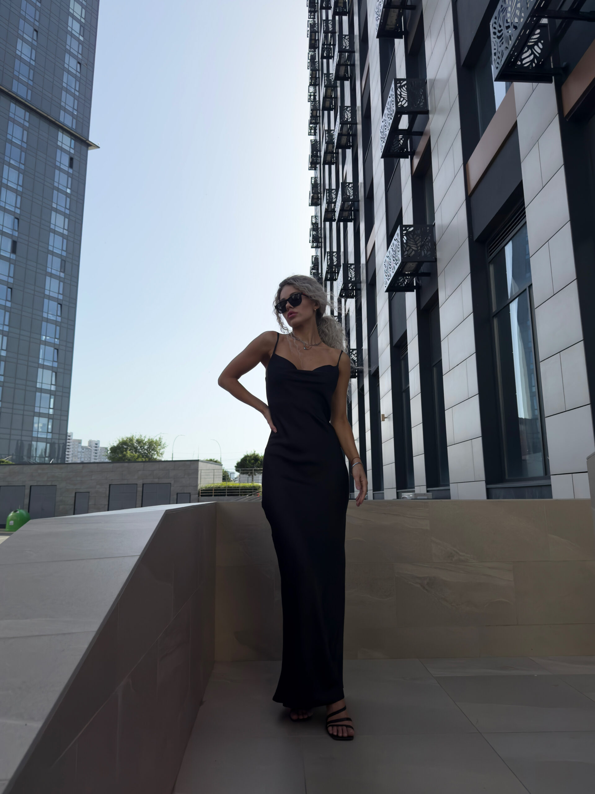 Шовкова сукня максі у білизняному стилі, бретелі на регулюванні. Завдяки крою по косій сукня чудово сидить.