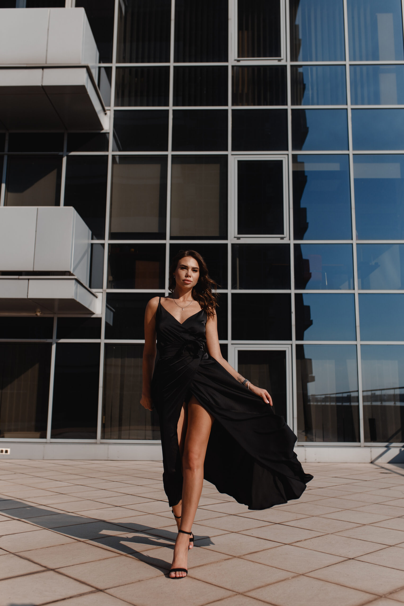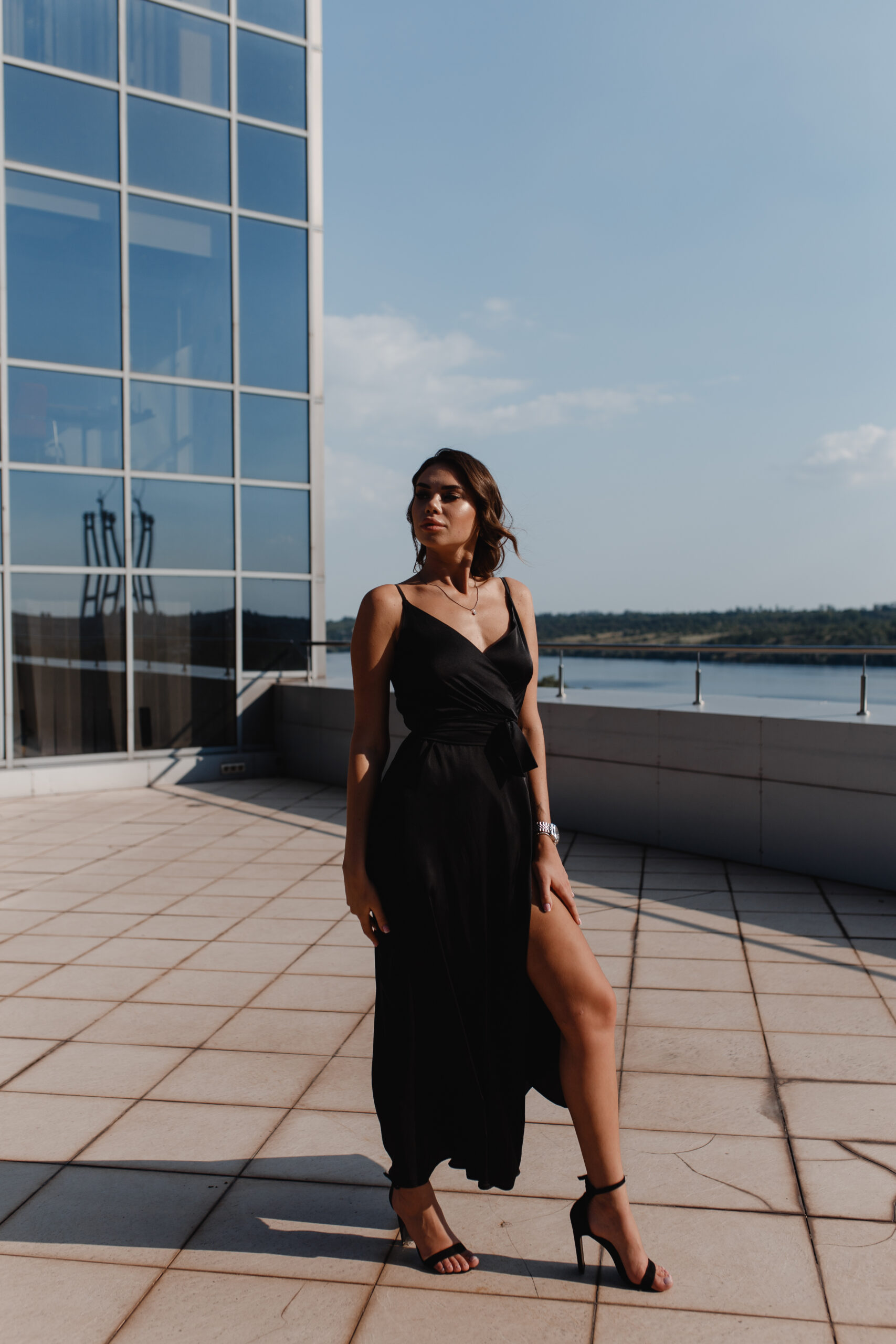 Шовкова сукня на запах у білизняному стилі шикарно підкреслює талію, бретелі на регулюванні.