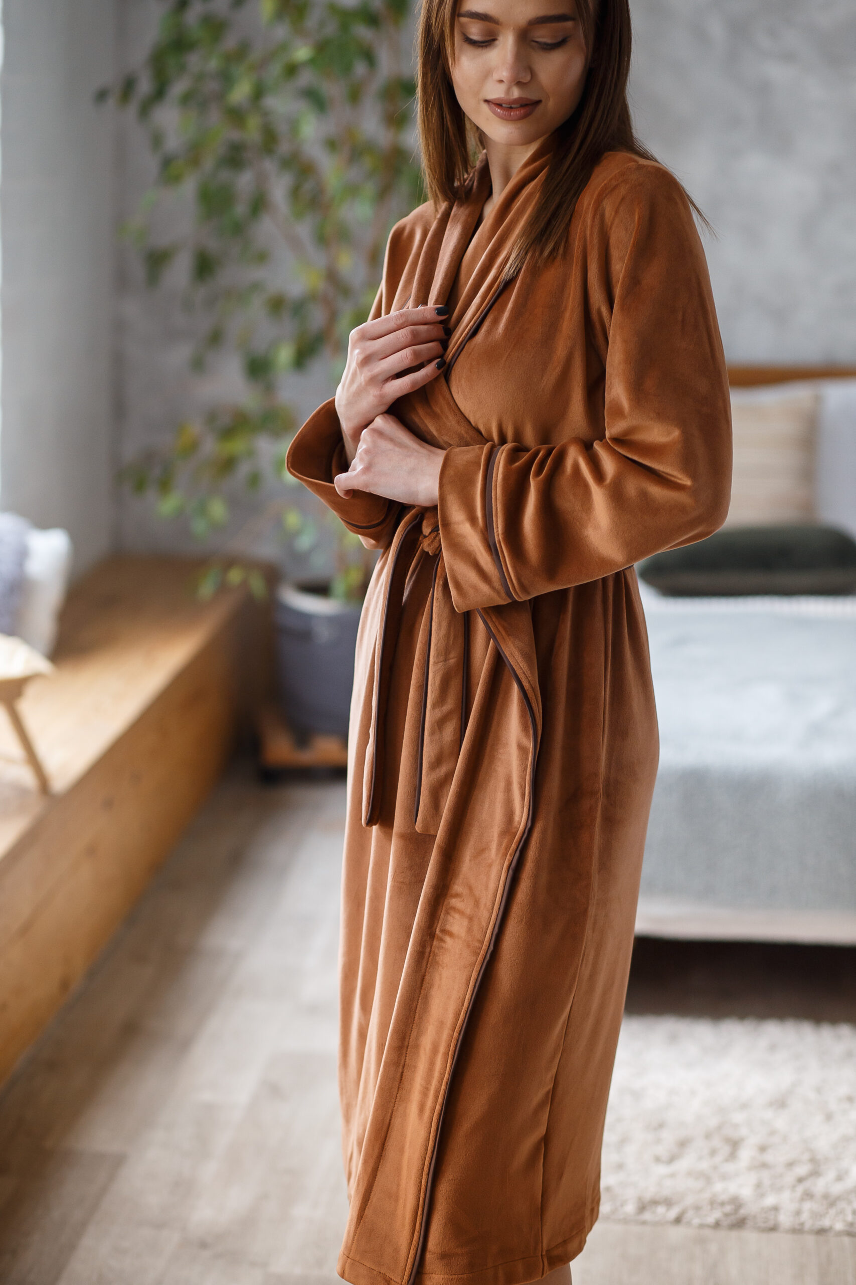Велюровий Халат із двосторонньго велюру з шовковим кантом, стильний, зручний і шалено теплий.