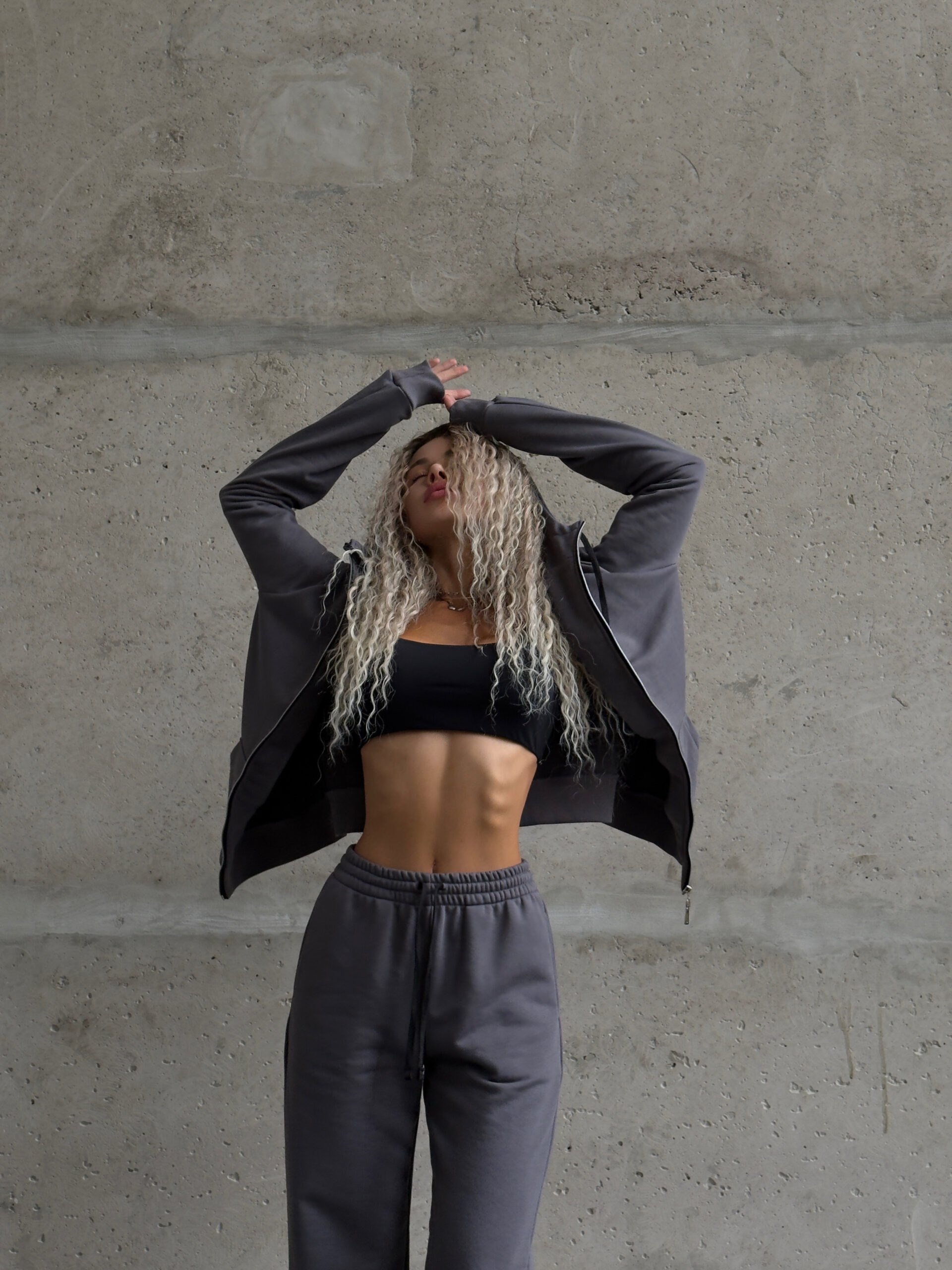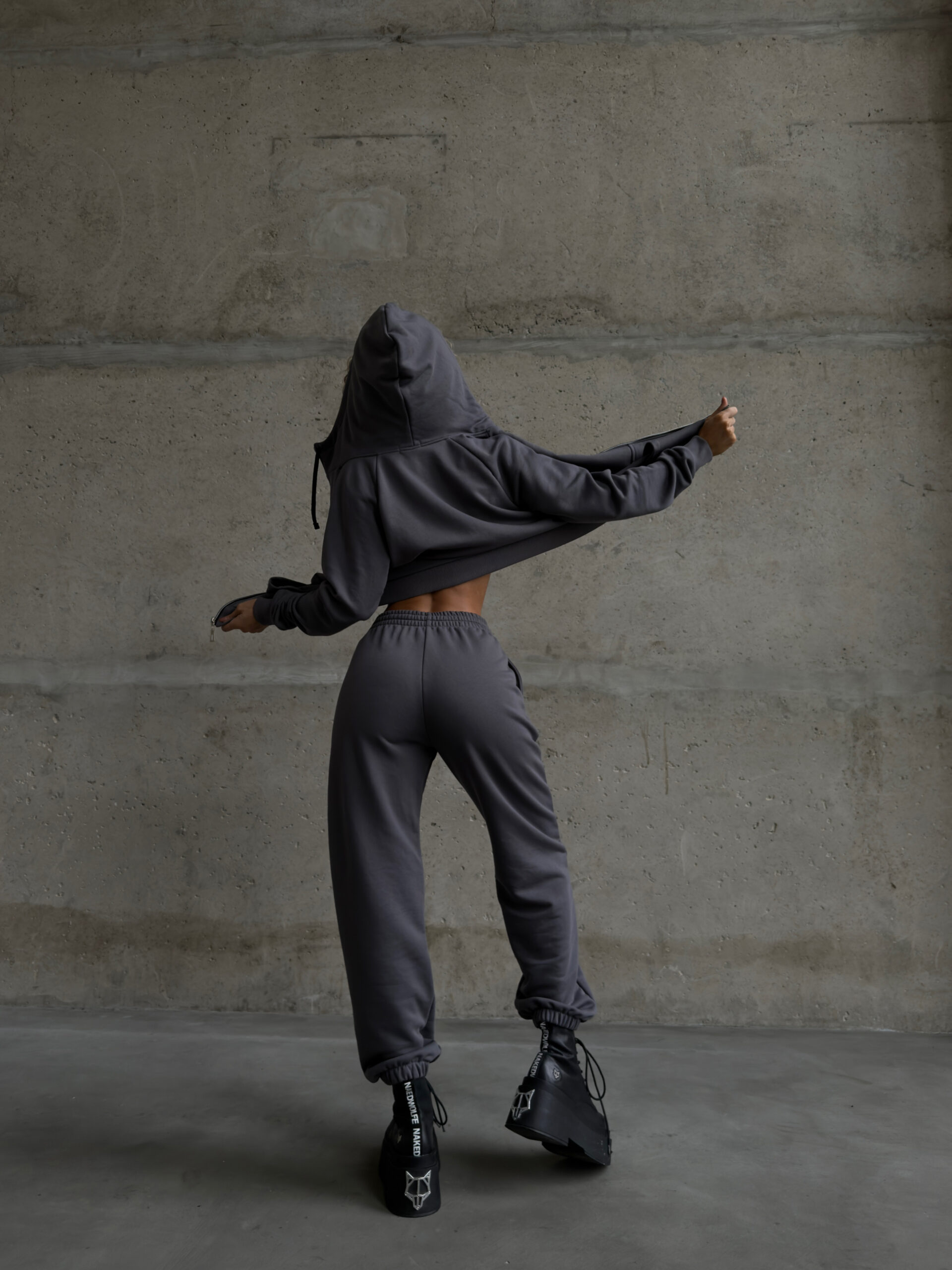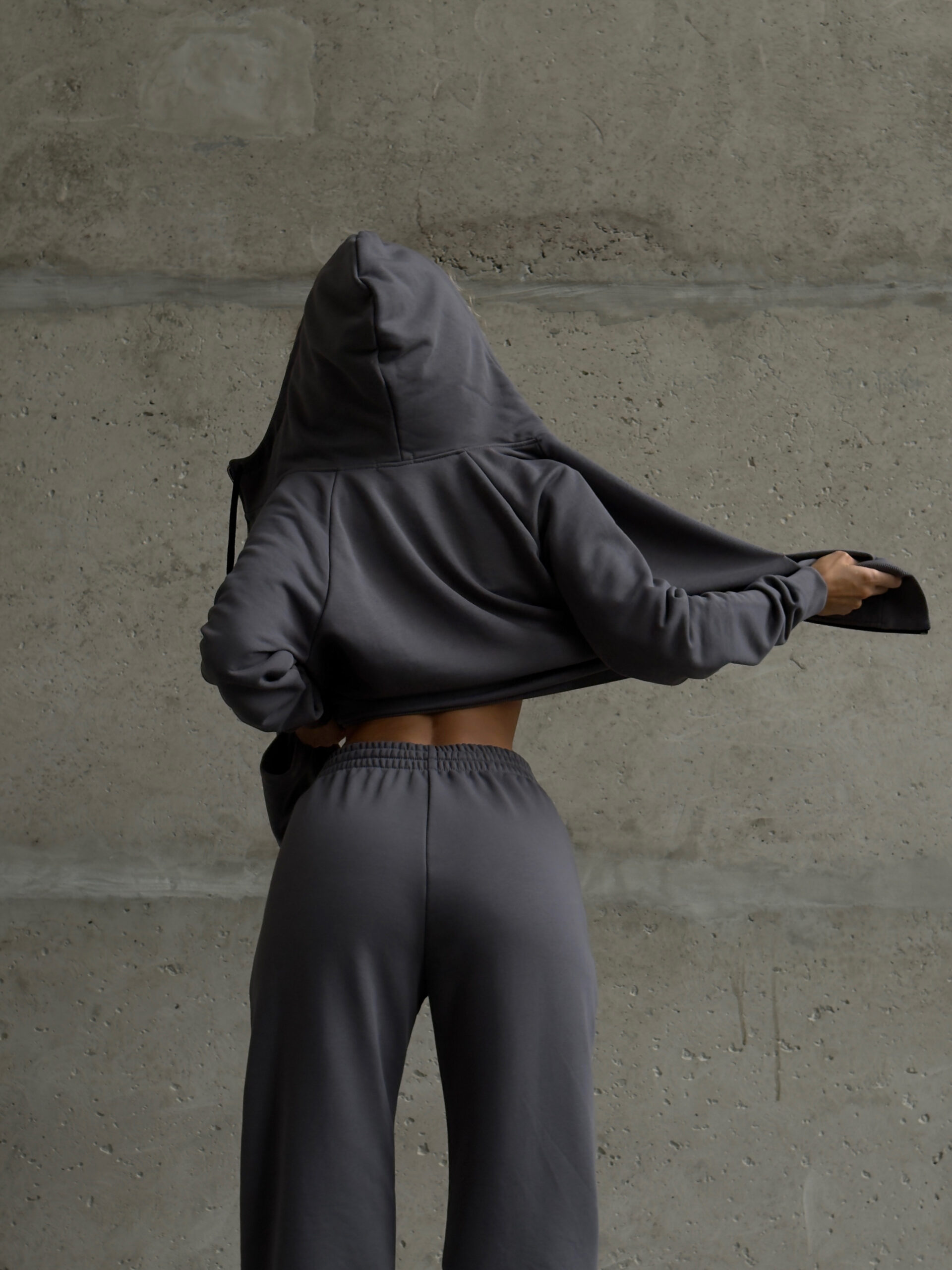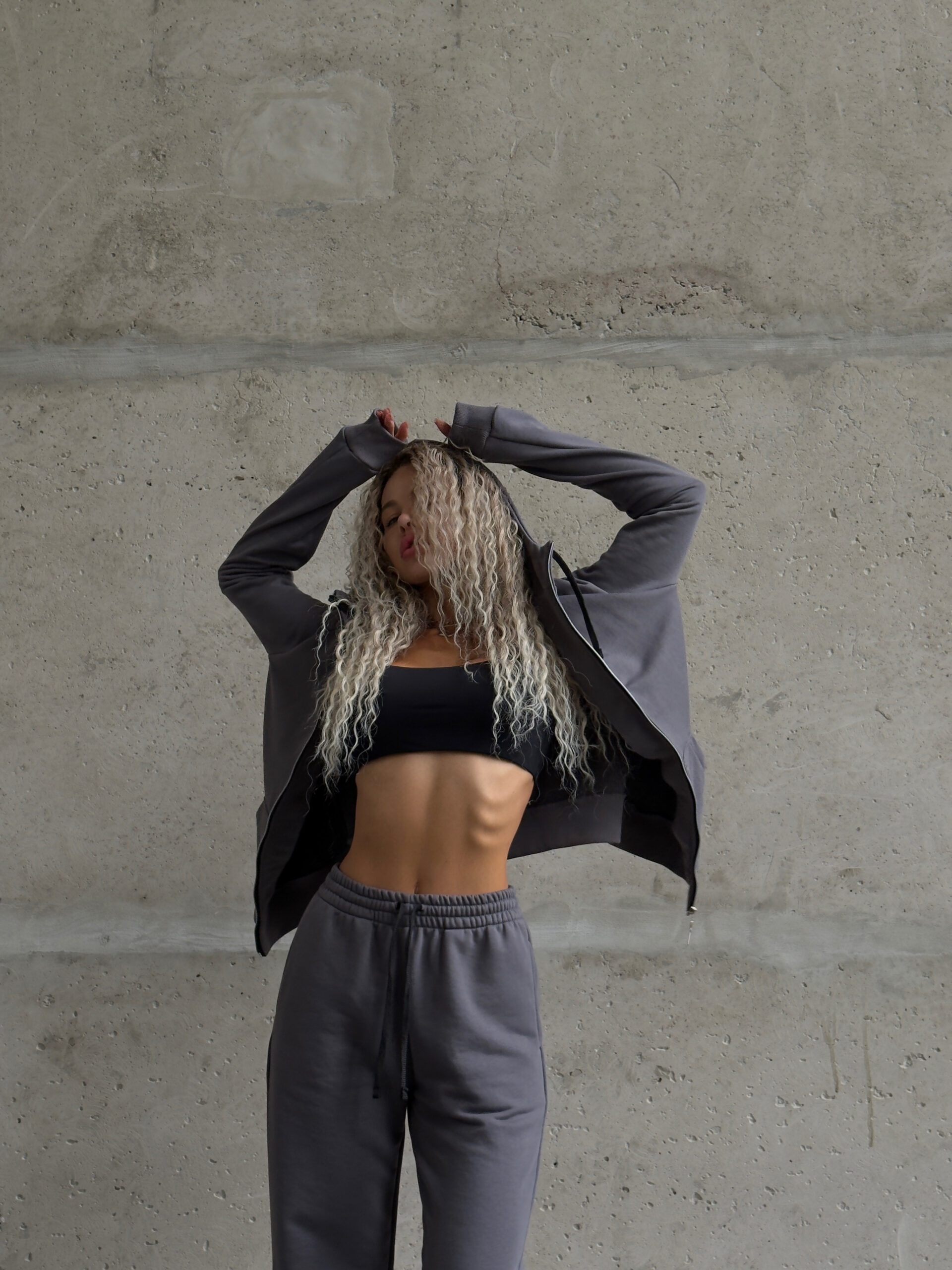 Жіночий костюм (худі на блискавці+джогери) виконаний з тканини преміум якості із турецької трьохнитки (пеньє), не кашлатиться та не линяє. Худі на блискавці з об’ємним, подвійним капюшоном. Джогери з кишенями, високої посадки та м’якою резиночкою, зі шнурками на поясі
