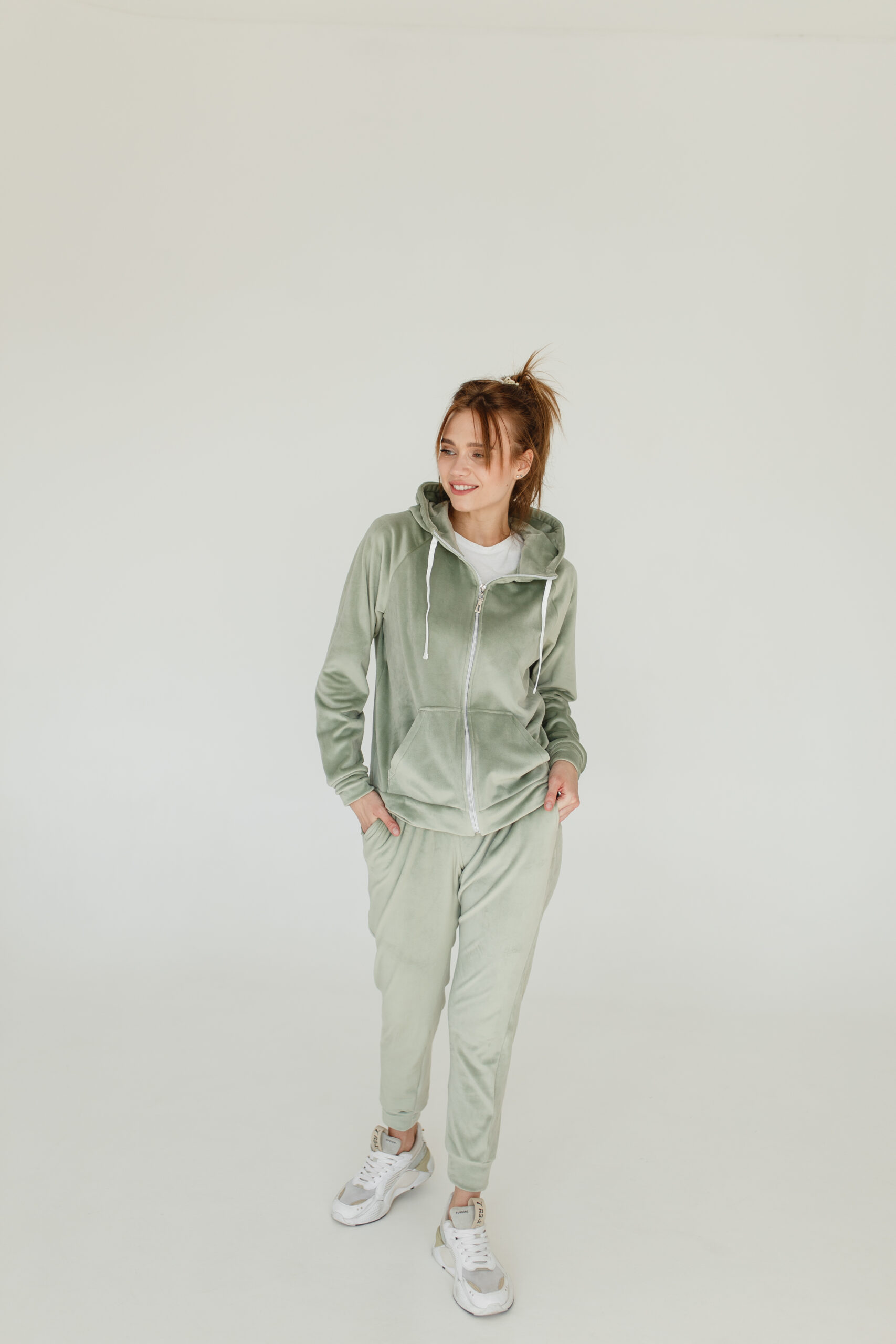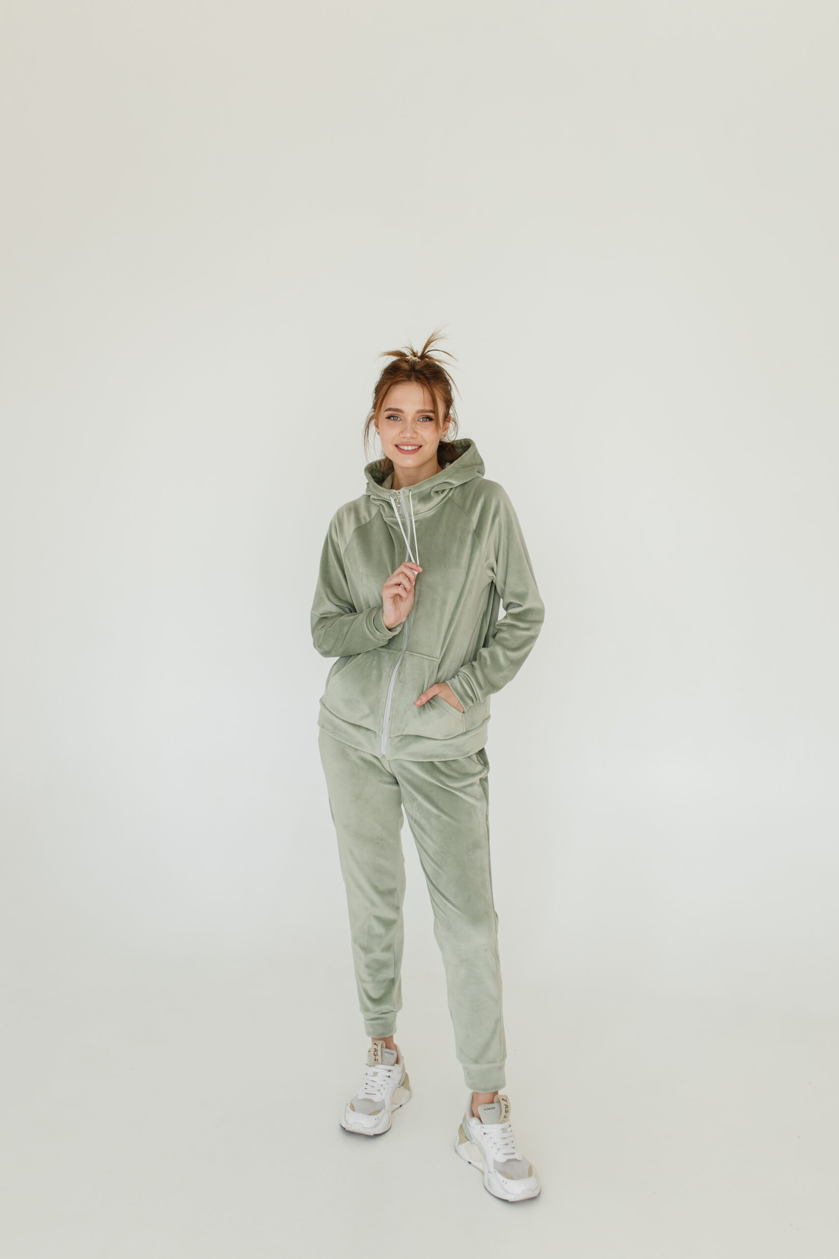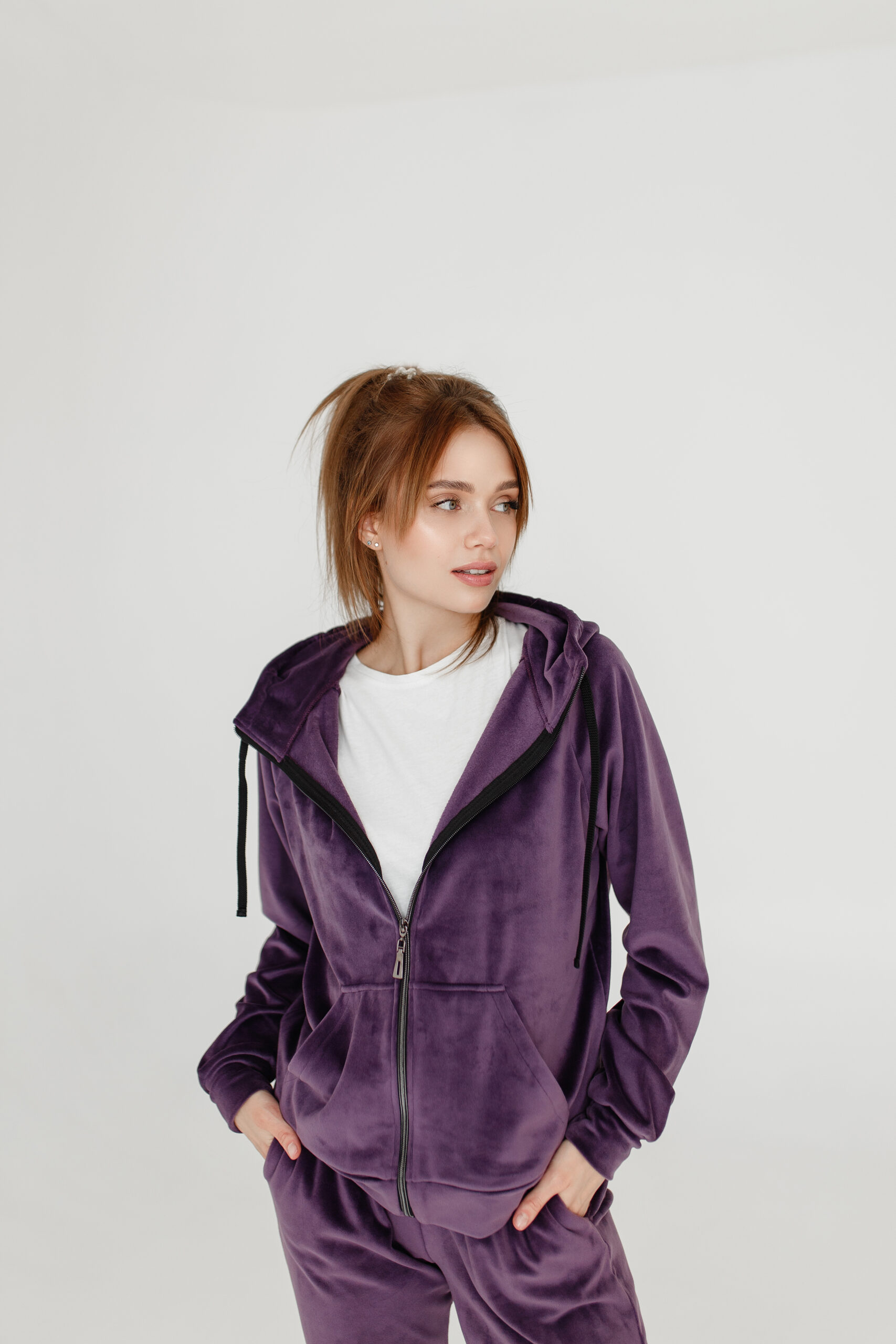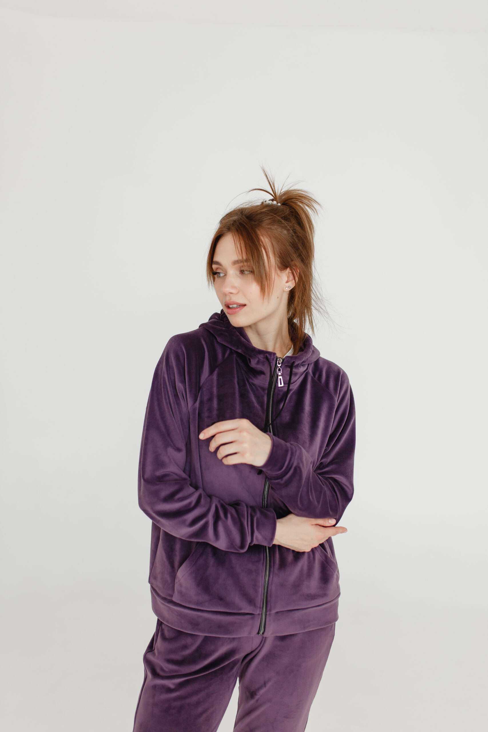 Костюм (худі oversize +джогери) із двосторонньго велюру , не кашлатиться, внутрішня сторона дуже приємна та тепла. Худі oversize із блискавкою з об’ємним, подвійним капюшоном. Джогери з кишенями, високої посадки та м’якою резиночкою, зі шнурками на поясі
