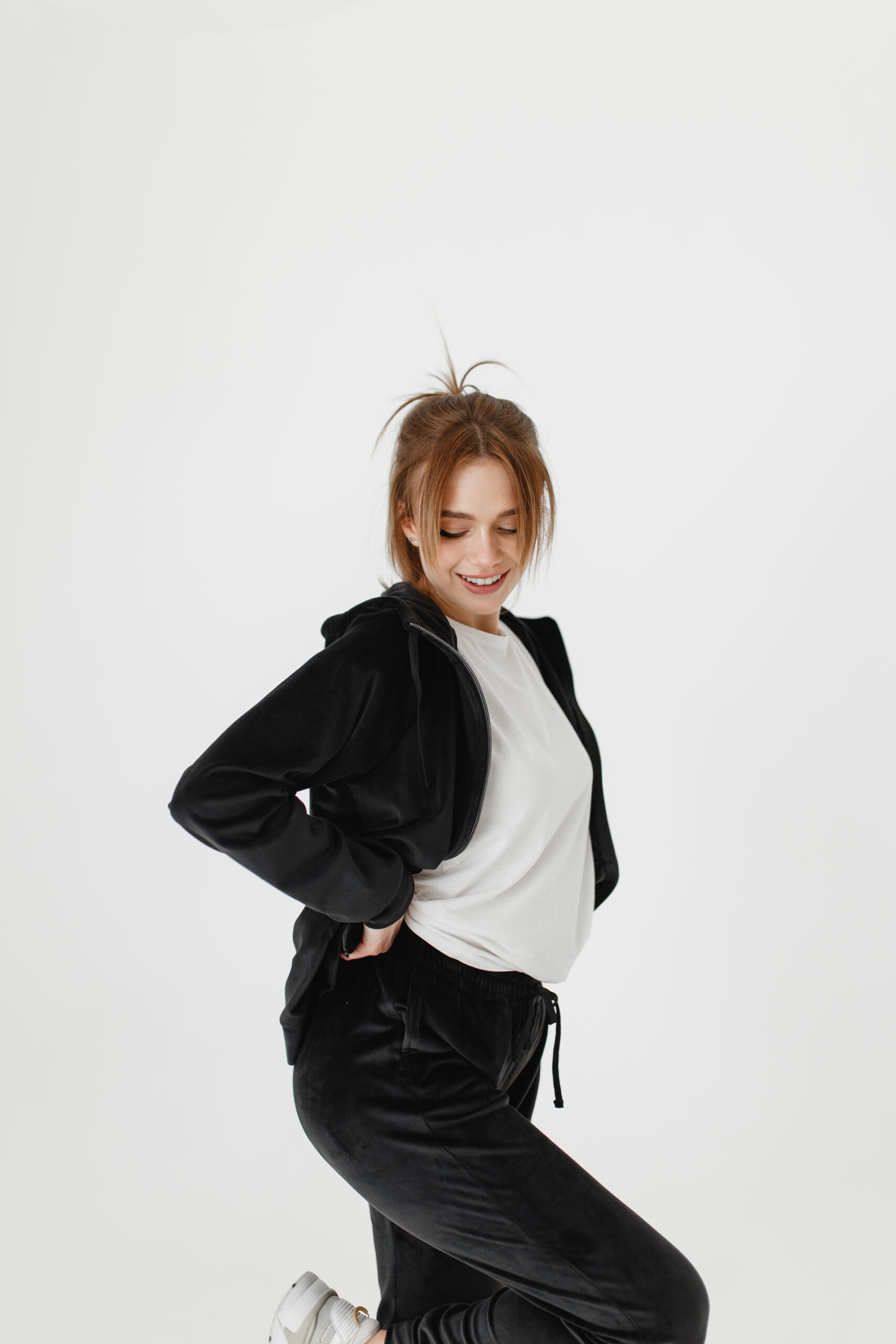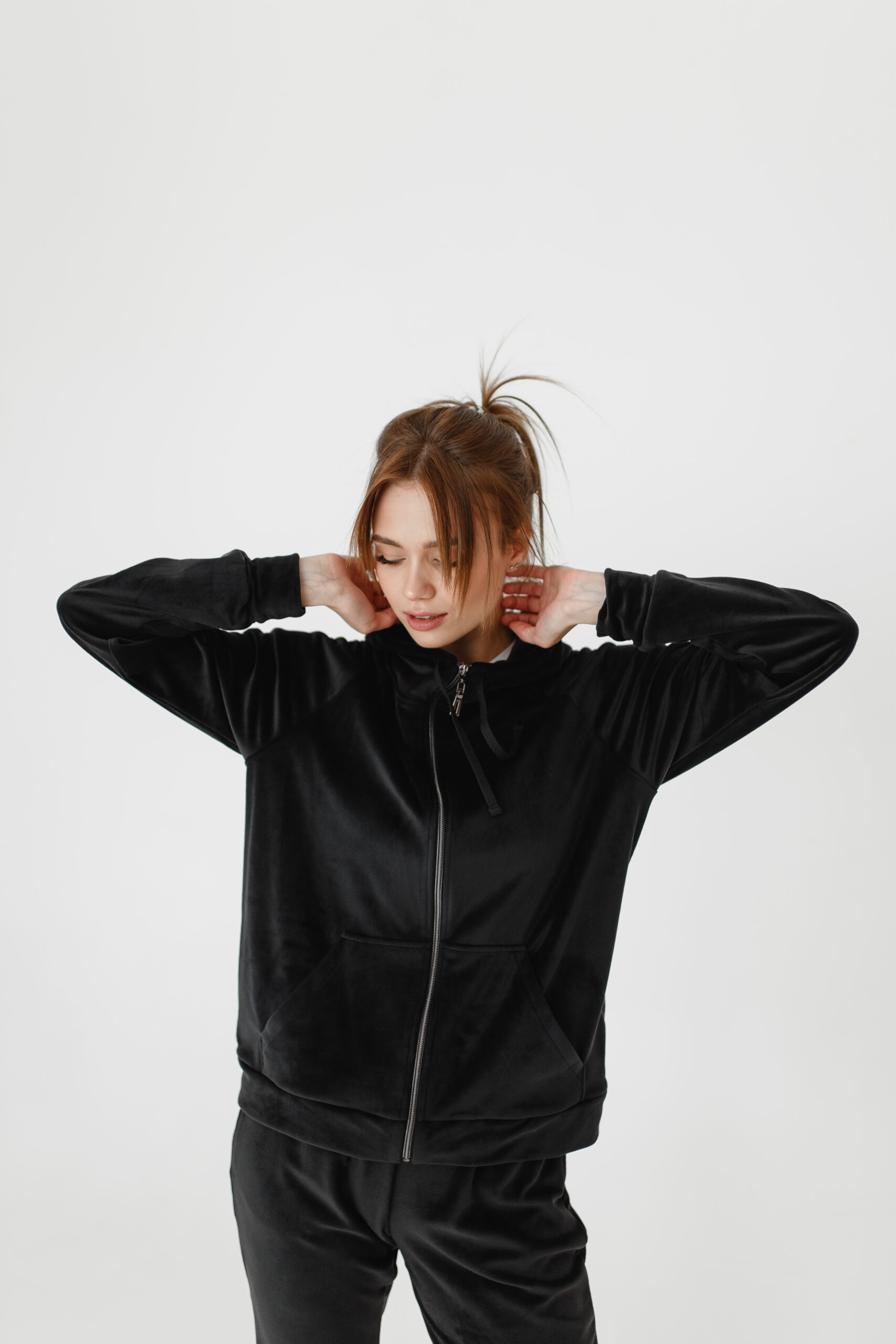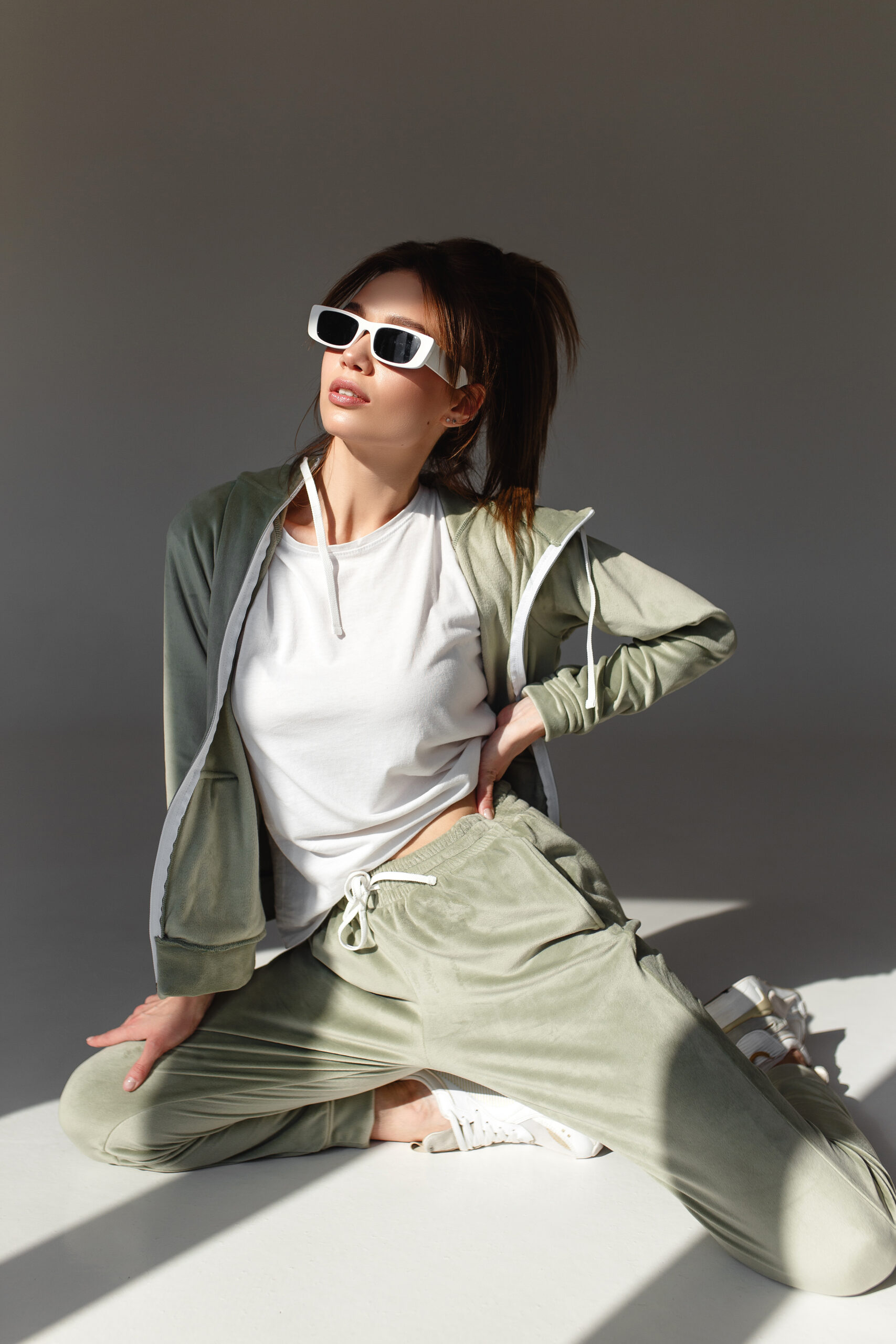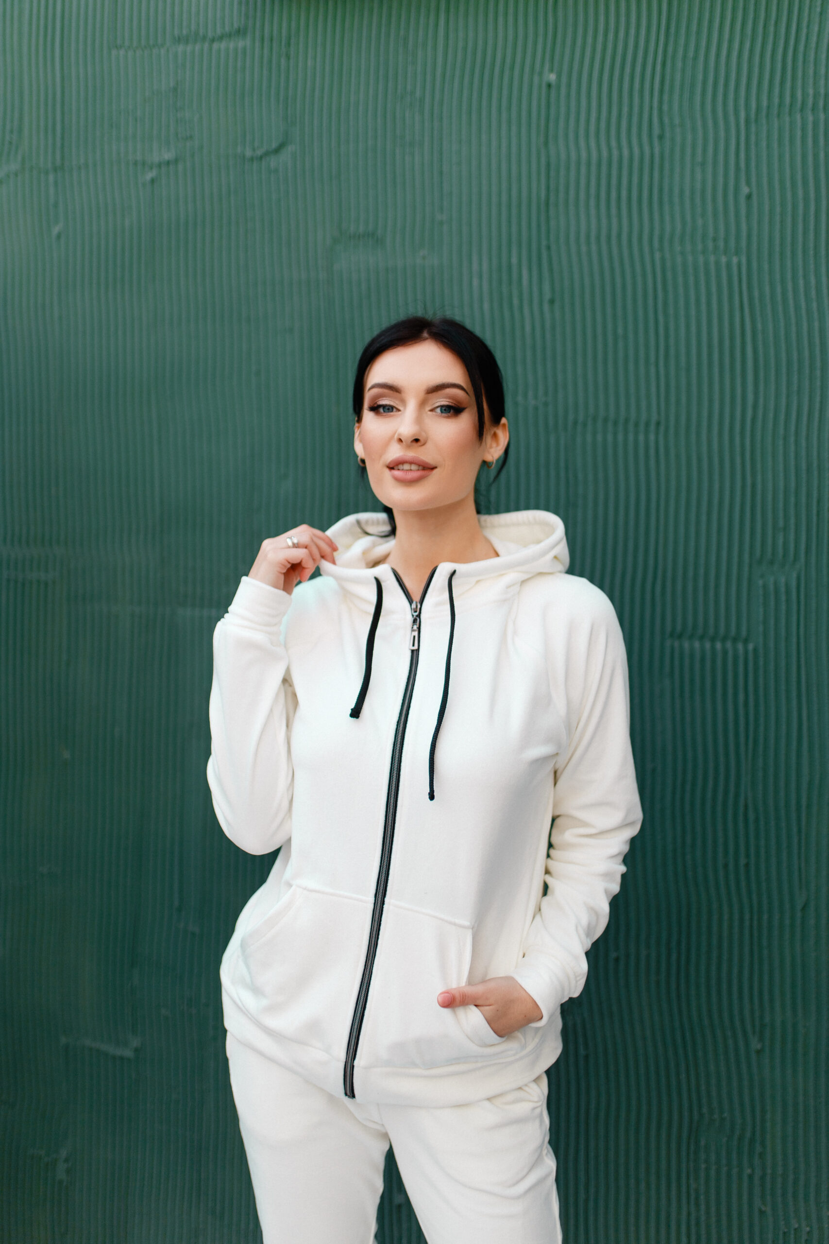 Костюм (худі oversize +джогери) із двосторонньго велюру , не кашлатиться, внутрішня сторона дуже приємна та тепла. Худі oversize із блискавкою з об’ємним, подвійним капюшоном. Джогери з кишенями, високої посадки та м’якою резиночкою, зі шнурками на поясі